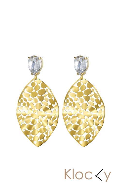 Bud To Rose Leaf Crystal Earring Clear/Gold Guld