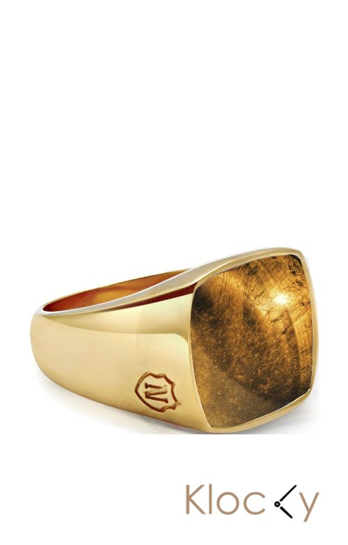 Nialaya Men's Gold Signet Ring With Brown Tiger Eye Guld