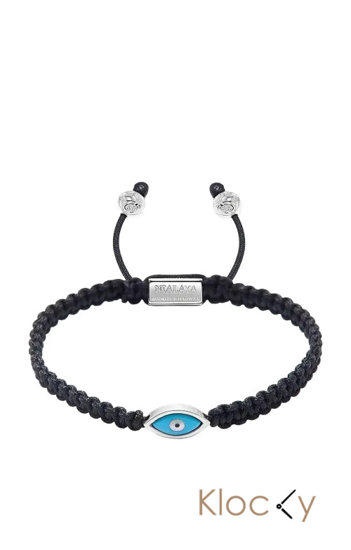 Nialaya Men's Black String Bracelet With Silver Evil Eye Svart