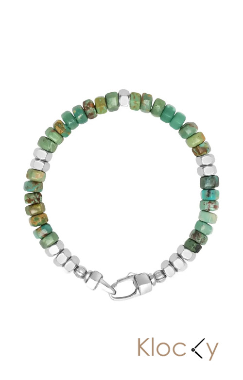 Nialaya Men's Hexagon Beaded Bracelet With Green Turquoise And Silver Grön