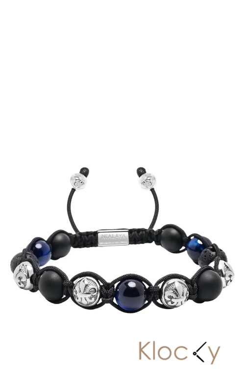 Nialaya Men's Sterling Silver Beaded Bracelet With Matte Onyx, Lava St , And Blue Tiger Eye Blå