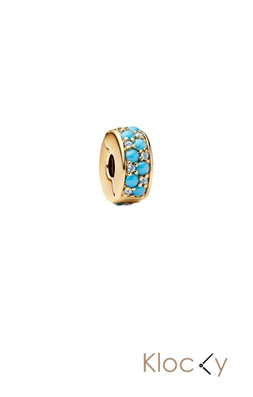 Pandora 14K Gold-Plated Clip With Icy Blue And Capri Blue Crystal And Silic Grip Guld