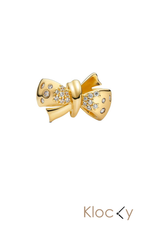 Pandora Bow 14K Gold-Plated Charm With Clear Cubic Zirconia Guld