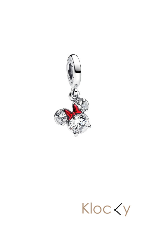 Pandora Disney Minnie Mouse Sterling Silver Dangle With Clear Cubic Zirconia And Holo Glittery Red Enamel Silver