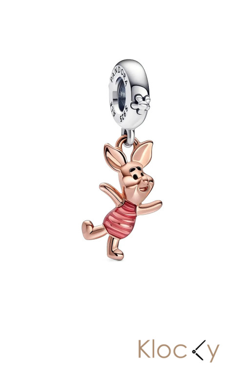 Pandora Disney Piglet Sterling Silver And 14K Rose Gold-Plated Dangle With Transparent Pink And Black Enamel Rosa