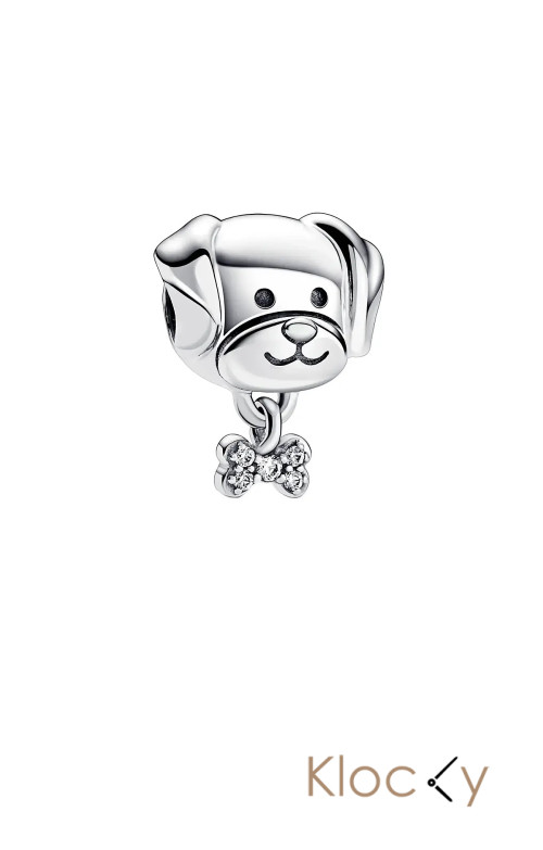 Pandora Dog Sterling Silver Charm With Clear Cubic Zirconia Silver