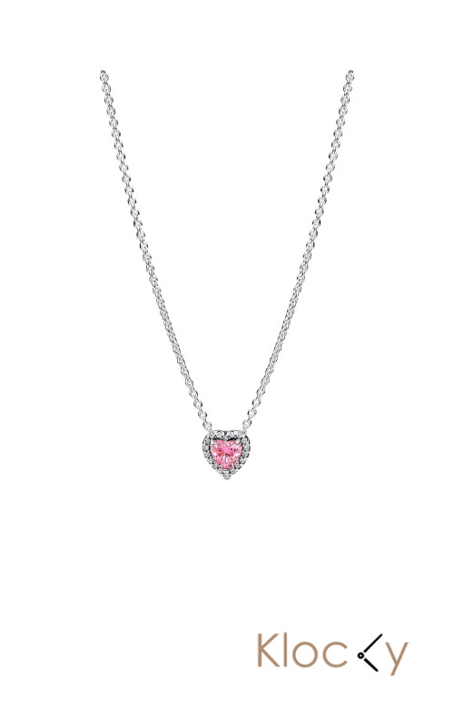 Pandora Heart Sterling Silver Collier With Fancy Pink And Clear Cubic Zirconia Rosa
