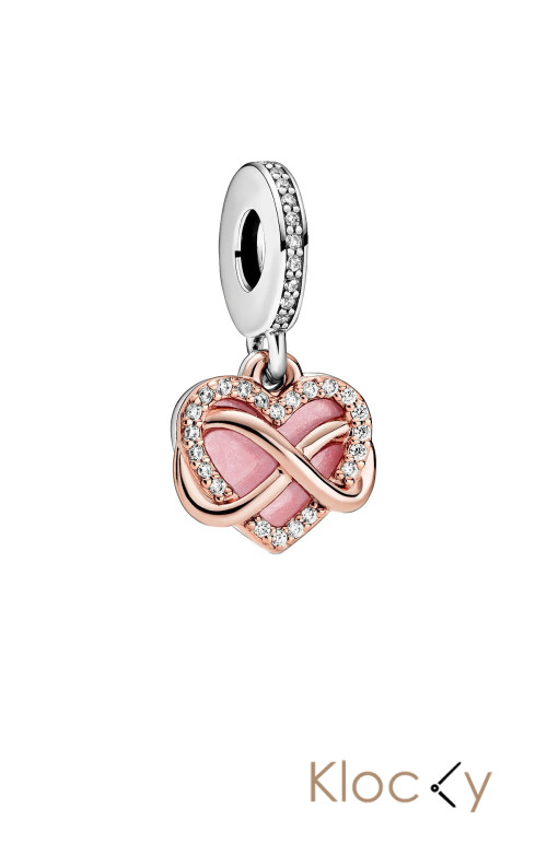 Pandora Infinity Heart 14K Rose Gold-Plated And Sterling Silver Dangle With Clear Cubic Zirconia And Pink En Silver