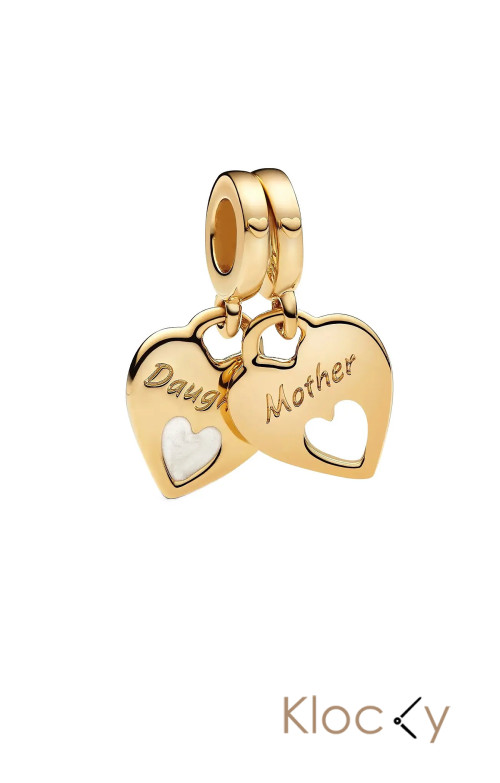 Pandora Mother And Daughter Hearts 14K Gold-Plated Split Dangle With Shimmering White Enamel Guld