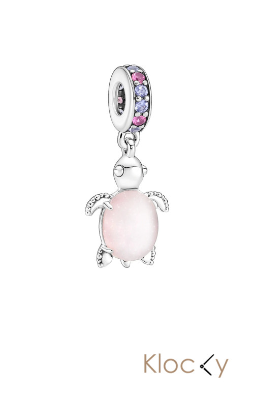 Pandora Sea Turtle Sterling Silver Dangle With Frosted Dichroic Pink Murano Glass, Regal Purple And Phlox Pi Silver
