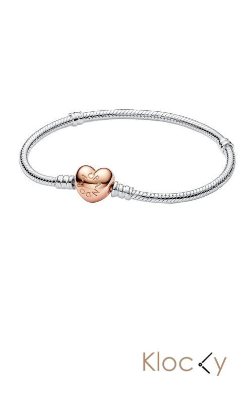 Pandora Silver Bracelet With Heart-Shaped 14K Rose Gold-Plated Clasp Silver