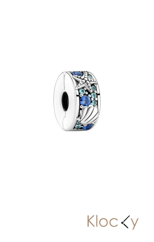 Pandora Starfish And Shell Sterling Silver Clip With Icy Green, Bleached Aqua Blue, Stellar Blue Crystal And Blå
