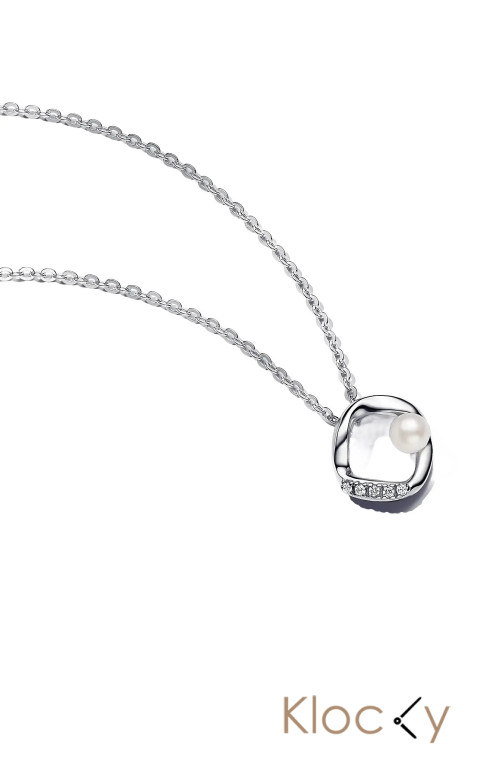 Pandora Sterling Silver Collier With White Treated Freshwater Cultured Pearl And Clear Cubic Zirconia Silver