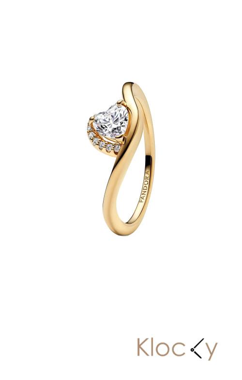 Pandora Wave Heart 14K Gold-Plated Ring With Clear Cubic Zirconia Guld