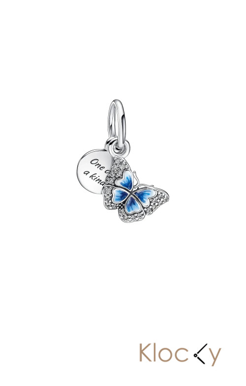 Pandora Butterfly Sterling Silver Dangle With Clear Cubic Zirconia, Shaded Blue And White Enamel Silver