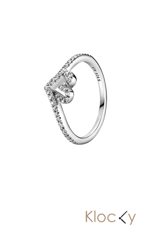 Pandora Heart And Wishb Sterling Silver Ring With Clear Cubic Zirconia Silver