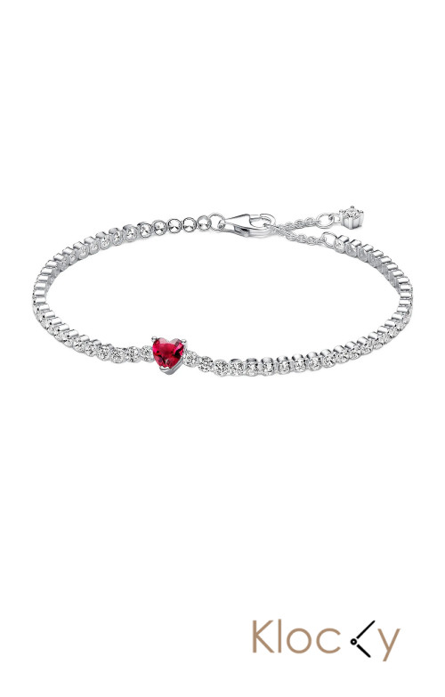 Pandora Heart Sterling Silver Tennis Bracelet With Cherries Jubilee Red Crystal And Clear Cubic Zirconia Röd
