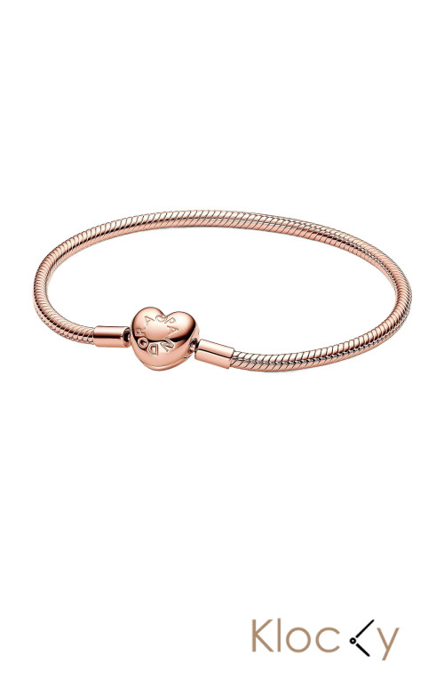Pandora Snake Chain 14K Rose Gold-Plated Bracelet With Heart Clasp Rosa