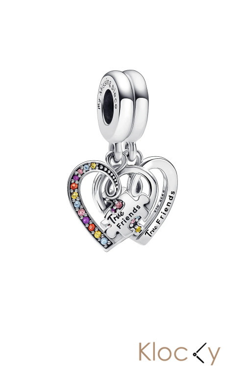 Pandora Splitable Hearts Sterling Silver Dangle With Icy Blue, Blazing Yellow, Burnt Orange, Royal Purple Cr Silver