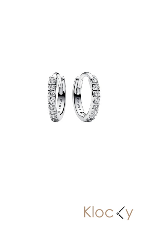 Pandora Sterling Silver Huggie Hoop Earrings With Clear Cubic Zirconia Silver