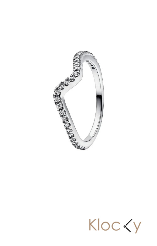 Pandora Wave Sterling Silver Ring With Clear Cubic Zirconia Silver