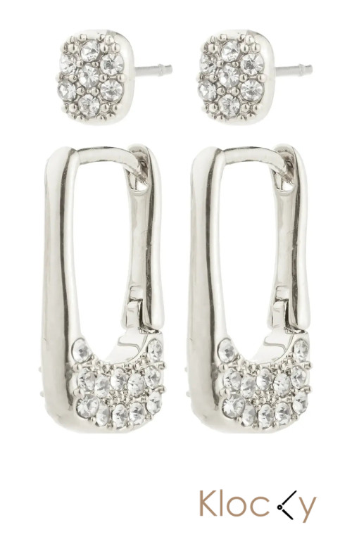 Pilgrim Instant Earrings 2-In-1 Set, Silver-Plated Silver