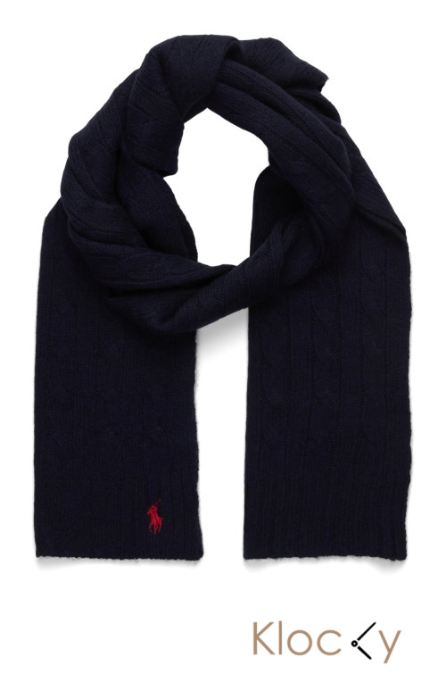 Polo Ralph Lauren Cable-Knit Wool-Cashmere Scarf Marinblå
