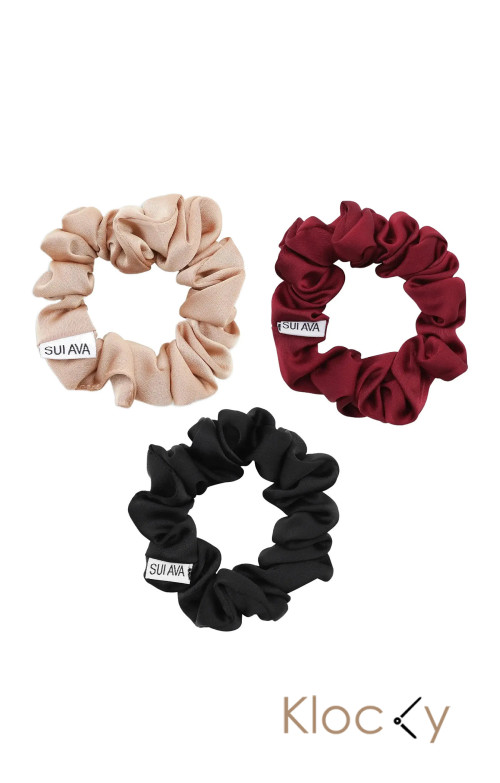 SUI AVA 3-Pack Ruched Ribbon Scrunchies Beige