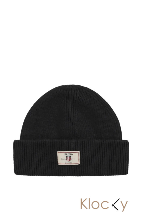 GANT Cotton Blend Ribbed Beanie Svart