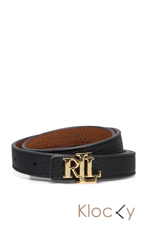 Lauren Ralph Lauren Logo Reversible Leather Skinny Belt Svart