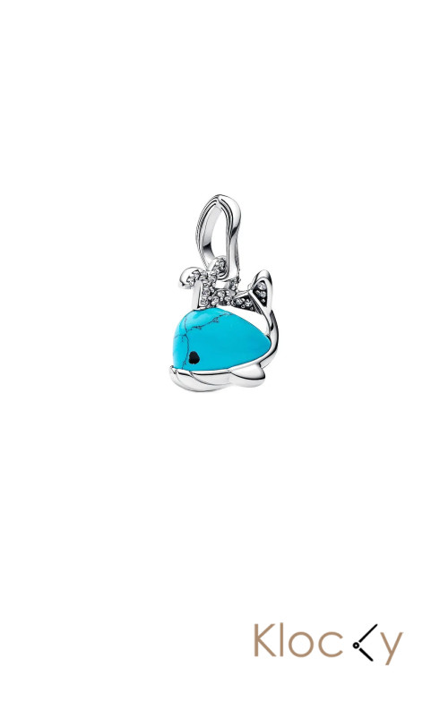 Pandora Whale Sterling Silver Dangle With Clear Cubic Zirconia, Imitation Turquoise And Black Enamel Silver