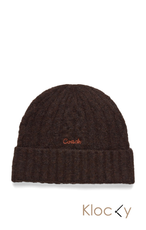 Coach Accessories Embroidered Cable Knit Beanie Brun