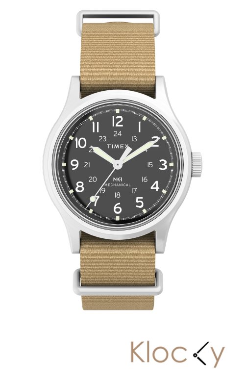 Timex Mk1 Hand Wind Sst Case Black Dial Tan Strap Silver